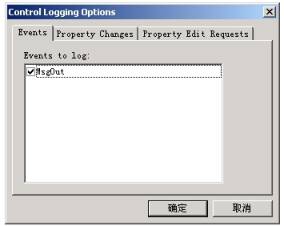 在用ActiveX Control Test Container对刚添加的事件进行测试时,首先通过"Control"菜单下的"Logging…"菜单项弹出如图10所示的对话框,并从"Events"属性页中选中要跟踪记录的事件。当通过Invoke Methods对话框设置Message属性的内容超过10个字符后,位于程序框架下方的分割视图将记录控件所触发的MsgOut事件(如图11所示)。