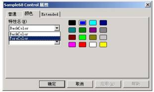这里只是在向导生成的缺省属性页中实现了自定义属性的可视化设置。虽然也可以用相同的方法为库存属性进行设置,但是更多的还是采用添加库存属性页ID的方法来直接使用库存属性页来对其进行维护。例如,对于库存属性BackColor和ForeColor,可以通过ID号为CLSID_CcolorPropPage的库存属性页来进行设置,在将其添加到属性页ID表的同时一定要注意修改BEGIN_PROPPAGEIDS()宏的属性页计数,否则将会引起系统的崩溃: