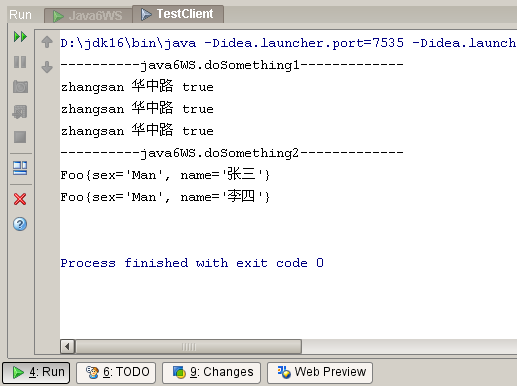 List listUserBean = java6WS.doSomething1("zhangsan", "华中路", true);