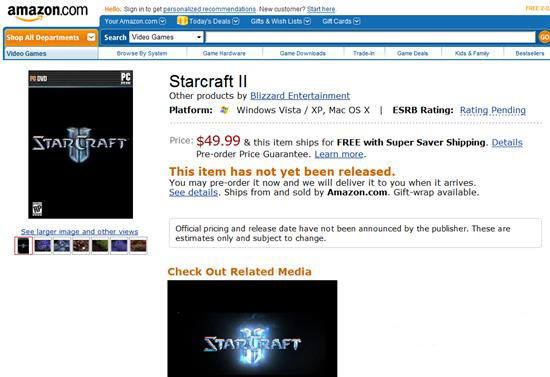 虽然鬼才知道暴雪何时会发布《星际争霸2》,但美国大型电子零售商亚马逊已经开始接受该作的预订。