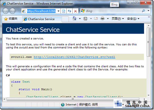 [ServiceContract(CallbackContract=typeof(IChatServiceCallBack))]//这里需要定义IChatService接口的回调接口IChatServiceCallBack