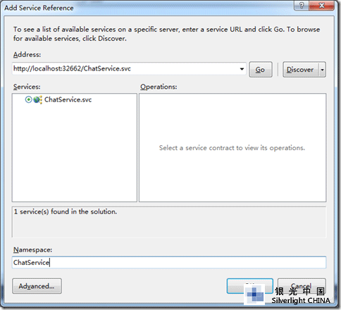 先建立一个单独的project,silverlight app,当然还是需要先引用WCF服务的: