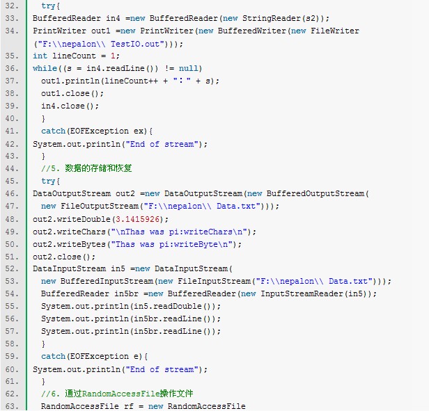 运用上面介绍的Java中操作IO的API,我们就可完成我们想完成的任何操作了。但通过FilterInputStream和FilterOutStream的子类,我们可以为stream添加属性。下面以一个例子来说明这种功能的作用。