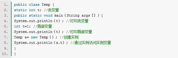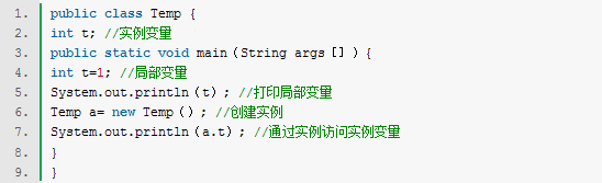 java类的成员变量有俩种:一种是被static关键字修饰的变量,叫类变量或者静态变量;另一种没有static修饰,为实例变量。
