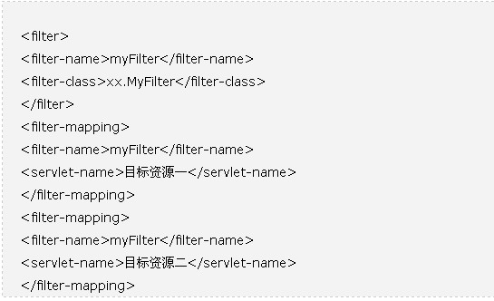 这种过滤器的工作方式比较简单,大家也经常遇到,如下图所示:以下是web.xml文件配置方式: