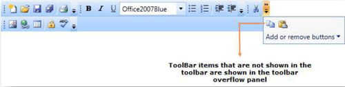 在ToolBar控件中,按钮和其他UI元素以水平和垂直方式排列。用户可以拖动工具栏和工具栏托盘上创建新的一行。ToolBar控件还允许用户在工具栏托盘上创建多个工具栏。