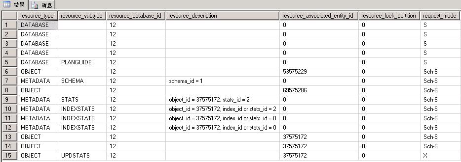 如上图:此时update操作以排他锁锁定了整个表,以架构稳定锁(Sch-S)锁定它相关的元数据表。