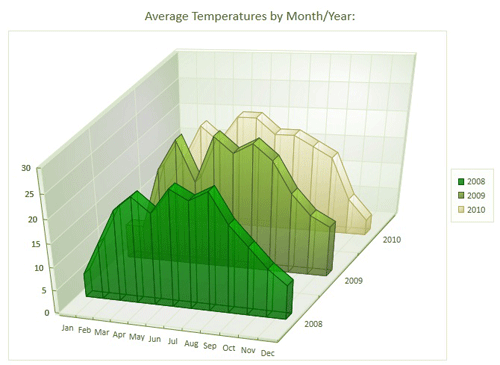 这些新的3D图表支持软件和硬件(基于OpenGL)渲染。你可以在更新后的CBCGPChartExample中查看到这些图表类型。另外,你还可以访问Charts Gallery,看看通过使用工具包,你可以创建出多少专业而漂亮的图表。