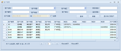 这些初始化设置完成后,一般查询界面都会有一个条件的组合,然后通过组合条件查询数据库记录并显示,显示的时候,分页控件可以设置对应字段的中文显示名称,显示的字段列,显示顺序等。显示字段的顺序就是列表的显示顺序,这个特性也是新版本增加的功能之一。