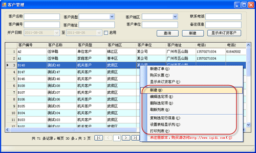上图中,红色的菜单是分页控件内置的菜单项,其他程序附加是扩展菜单项目,其中复制选定行信息、设置表格显示列、打印列表是对表格基本的操作功能。下面两个版本的控件右键菜单均表现一致。