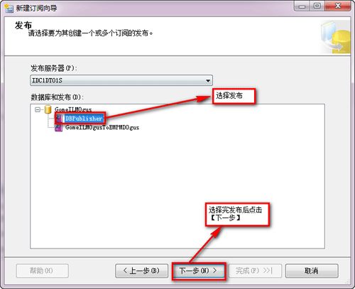 二、订阅。订阅是对数据库发布的快照进行同步,将发布的数据源数据同步到目标数据库。具体订阅过程如下;