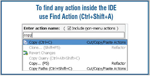 很棒的是,在使用过程中,也可以随时查找快捷键的定义,只要同时按下Ctrl+Shift+A,可以查找快捷键定义: