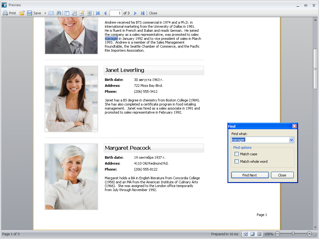 概述:FastReport.NET提供方便的MS Word样式的预览窗口,支持在报表预览状态中进行文本搜索,还支持在报表预览状态中进行修改。