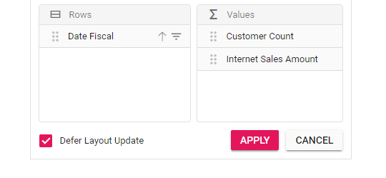 | 在行上显示度量 | 在行轴上绑定度量。默认情况下,它将绑定在列轴上。 |
