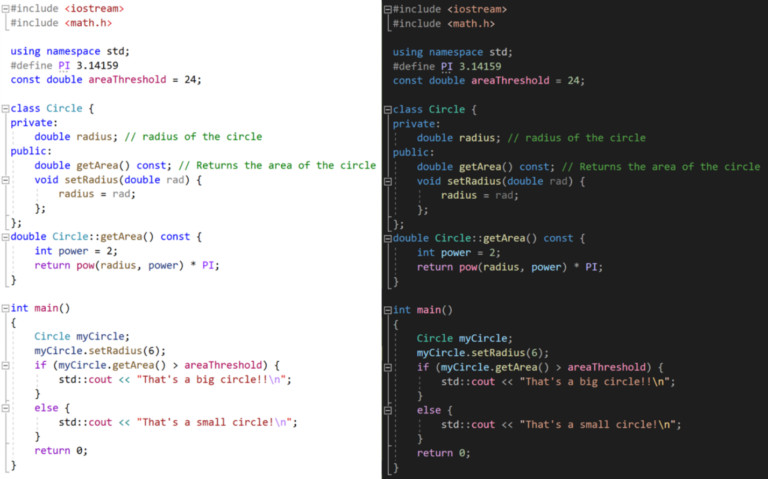 接下来,一个新的默认语义着色方案使您可以一目了然地理解您的代码。您将注意到以下区域中的新颜色:函数、局部变量、转义符、关键字-control (如果/否则/用于/返回)、字符串转义字符和macros。还有一个选项可以区分全局函数和成员函数以及变量。下面的截图演示了Visual Studio的蓝色和深色主题的新着色: