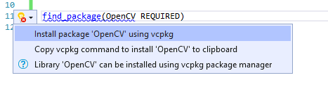从生产力到跨平台开发,我们做了一些用户体验的改进。首先,对于CMake项目,您现在可以使用我们的跨平台c++库管理器Vcpkg直接从IDE安装应用程序所依赖的缺少的第三方库。您需要在您的机器上安装Vcpkg,运行“Vcpkg集成安装”来设置它,并在CMake项目中有一个Vcpkg工具链文件来利用这个特性。当您激活此功能时,Vcpkg将从源代码下载您的库,为您编译它,并使其可用于您未来的构建。此快速操作还将为您安装程序包的上游依赖项。