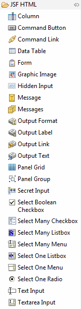 调色板从构建路径中读取标记库并加载它们,这样您就可以使用拖放特性来构建页面。