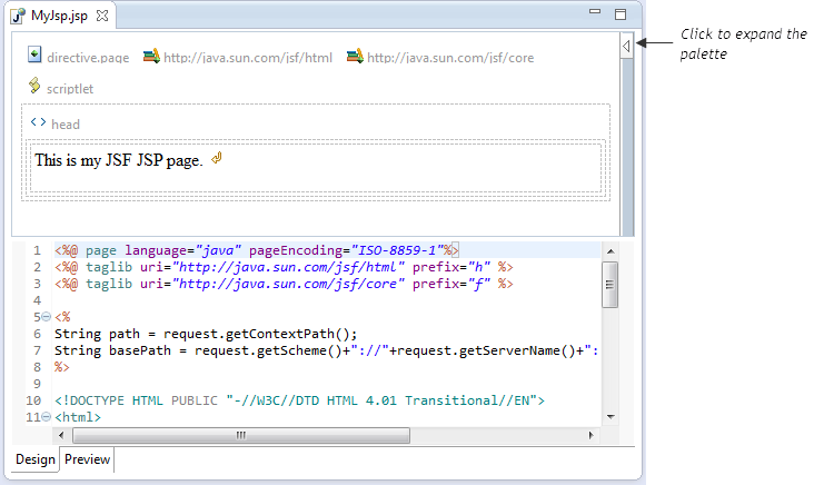 设计器通过在页面上导入和使用的标记库识别JSF页面,因此可以将Designer与其他JSF页面格式一起使用。