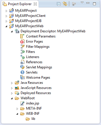 WEB-INF/lib | WEB-INF的子文件夹,包含项目的.JAR文件 |