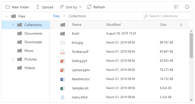 文件管理器控件执行所有常用的文件操作:创建、删除、剪切、复制、粘贴、重命名、上传和下载文件和文件夹。