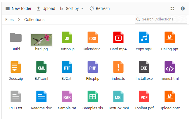 Essential JS 2套件具有大量控件,这些控件具有通用Web标准和功能,如Web可访问性、从右到左呈现、键盘交互、模块化架构和响应性,以及具有触摸友好的轻量级ui。。现在,文件管理器包含在此套件中,包含所有常见的JS 2功能以及特定于控件的功能。