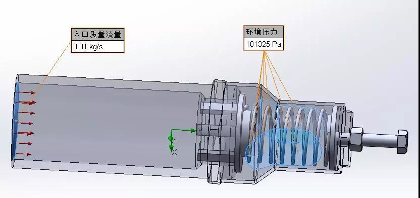 工况描述:流体对封盖有Y方向上的力和弹簧力平衡。