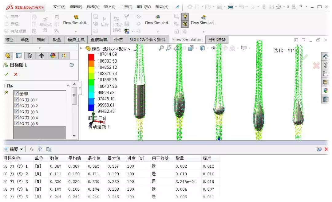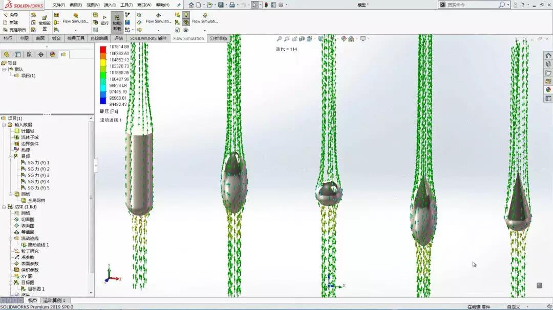 其次,采用 SolidWorks Flow Simulation 进行设置,分析每个形状下的模型阻力情况。其中阻力最小的模型便认定为和真实的雨滴外形最接近。