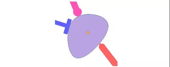 凸轮配合又叫凸轮推杆配合,是一个相切或重合配合的类型。它可允许将圆柱、基准面、或点与一系列相切的拉伸曲面相配合,如下图: