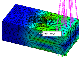 如您所见,分布显示了相同的模式,并且在两种情况下均达到了约320 MPa的最大值。这清楚地证明了螺栓连接器新的分布式连接选件的准确性。最后一点,值得一提的是,螺栓连接器的解决时间约为实心螺栓的解决时间的一半。而且设置非常容易。