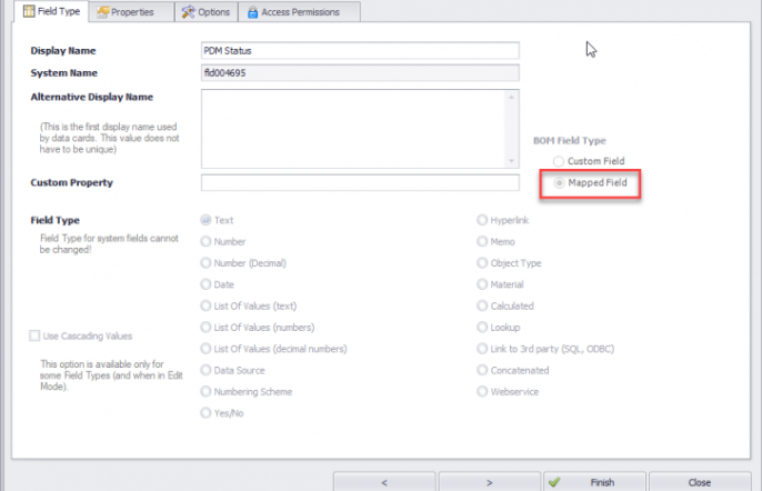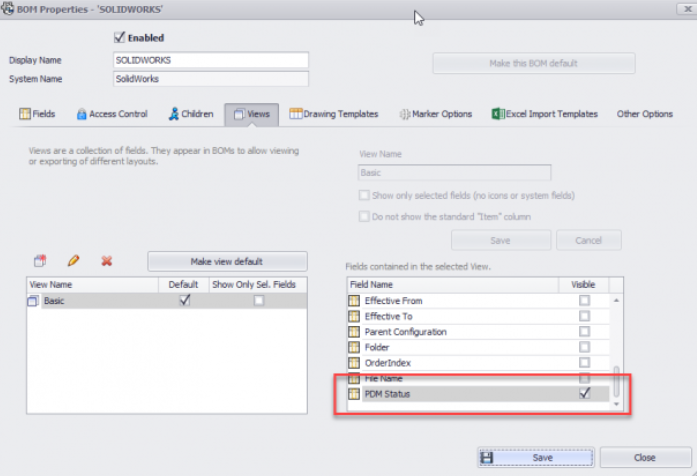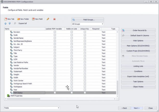 现在将在“字段”页面上看到“ PDM状态”变量。