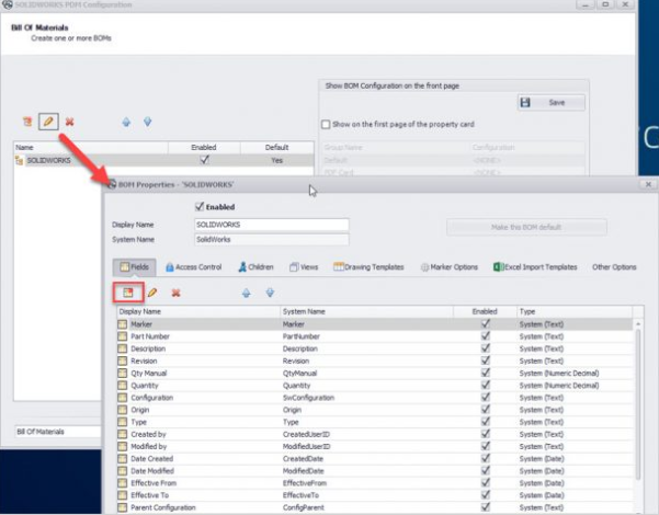 在“物料清单”页面上,编辑BOM表并创建一个新字段。