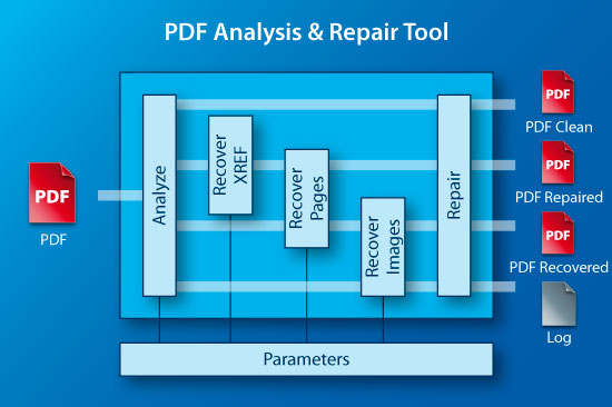 The 3-Heights™ PDF Analysis & Repair API analyzes PDF files against the PDF Specification. Corrupt PDF files are either repaired, or intact embedded images (including scanned pages) can be recovered if the file is irreparable.