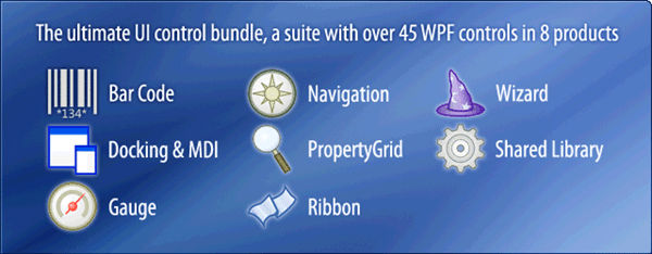 WPF Studio is a control packet,Contains:Actipro Bar Code,Actipro Navigation,Actipro Wizard,Actipro Docking & MDI,Actipro PropertyGrid control,Actipro WPF Shared Library,Actipro Gauge,Ribbon.