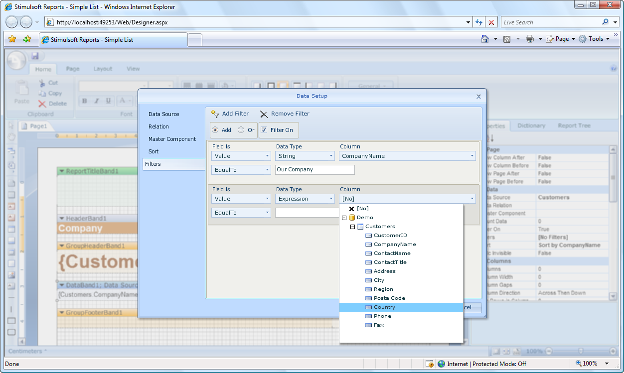Stimulsoft Reports Designer.Web – reports designer for Web.Do you want to edit your reports in Web? Now it is possible! Stimulsoft Reports Designer.Web – is the first report designer that allows you to edit reports completely in Web. There is no need to install .Net Framework, ActiveX components or other special plug-ins on your client’s machine. All you need is a Web Browser. Stimulsoft Reports Designer.Web is the modern and handy interface, rich functionality, high speed of work.