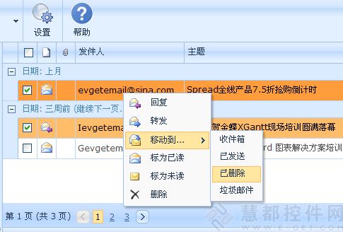 - 邮件多选功能,并可对多选邮件进行批量处理,包括:删除,移动到,标记已读和未读等