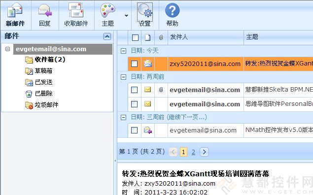 EvWebMail邮件插件(EWM)是慧都打造的新一代灵活、高效、集成并具有丰富功能的邮件插件。它通过Asp.Net极好的实现了在线邮件发送、接收以及邮件列表管理的效果,界面友好性强,具有极好的扩展性,开发者可以直接通过用户组件的方式进行使用,只需要极少的代码,就可将它整合到系统中,并且可方便的进行二次开发和功能扩展。
