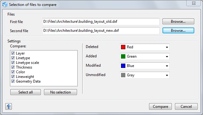 ABViewer支持修改前后的对比。对修改的地方以不同颜色图形标出。