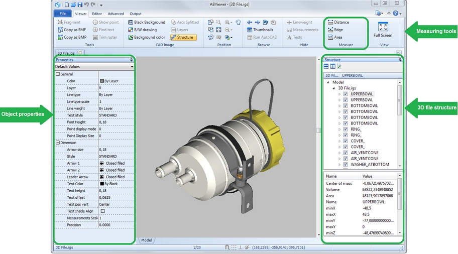 ABViewer是用于PC,处理工程图的通用软件。它使您可以查看、编辑、转换、测量和打印DWG和其他CAD文件以及3D模型和栅格图像。您可以使用单独的工程图片段,或者相反,使用一组文件。所有这一切都具有吸引力的价格!
