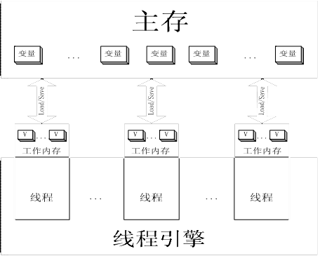 根据Java Language Specification中的说明, jvm系统中存在一个主内存(Main Memory或Java Heap Memory),Java中所有变量都储存在主存中,对于所有线程都是共享的。