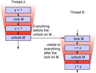 x = 0; y = 0; i = 0; j = 0; // thread A y = 1; x = 1; // thread B i = x; j = y;