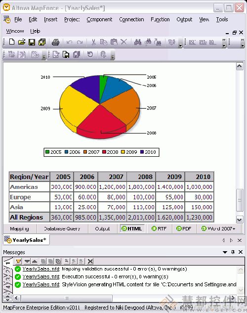 概述:近日,Altova 公司宣布旗下服务器端软件Altova MapForce 2011正式与广大用户见面,新版本增加了众多新功能,与StyleVision集成输出组件,格式化数字,日期和时间等,更加方便地实现多种文件之间的转化以及自动生成报告。