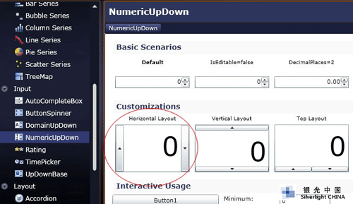 概述:在实际开发应用中,Silverlight默认控件样式并不能满足我们所有的需求,特别是对华丽界面的构造,需要对现有控件进行皮肤重写。 WPF/Silverlight中使用xaml描述界面,类似Css,它们同样有Style和Template。目前微软开源工具包中集成的均是复杂类型控件,如何修改它们的样式确实难倒了不少朋友,那么本节以分析为主,结合对常用的NumericUpDown控件向大家讲解如何对现有控件进行样式重写。