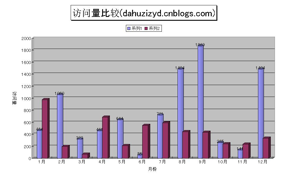 "访问量比较(dahuzizyd.cnblogs.com)", "月份", "访问量",