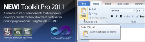 Codejock软件公司旗下的用户界面套包Xtreme Toolkit Pro 2011 v15.2正式发布。新版本增加了众多新功能并对现有功能进行了增强,如office 2010风格的Ribbon自定义对话框,任务栏管理器控件,Range-Area和step-Area图表类型,批量添加数据点等。