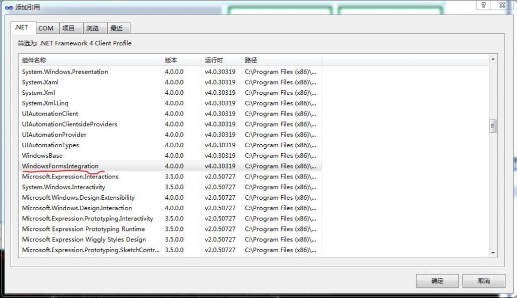 在XAML中添加System.Windows.Forms.Integration命名空间