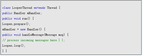 这样你的线程就具有了消息处理机制了,在Handler中进行消息处理。