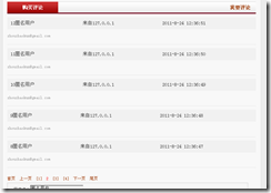 如图,上部分是分页后取出来的数据。下部分是 分页器的实现(关于分页器的实现请参考 //www.cnblogs.com/zhouzhaokun/archive/2011/08/24/2151558.html)