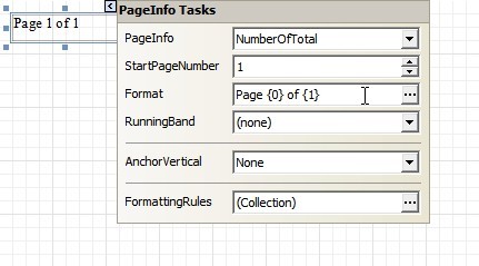 如果有必要的话,可以通过 XRPageInfo.Format 属性来修改在报表中显示的页码的格式。 例如,把此属性值设置为 Page {0} of {1}。