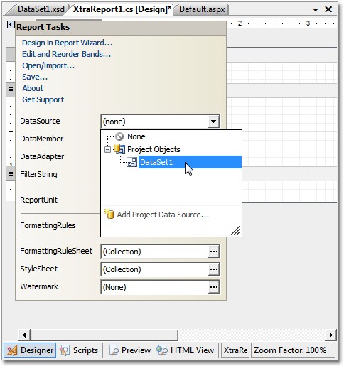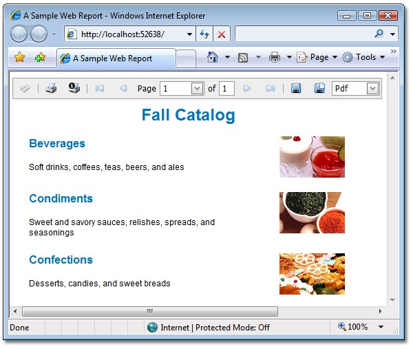 现在 Web 报表已经就绪。 运行此应用程序,并在系统的默认网页浏览器中查看所创建的 ASP.NET 页面。 如果 Default.aspx 页面没有被指定为项目的启动页面,那么请在 解决方案资源管理器 中使用鼠标右键单击此页面,并选择 设为起始页 菜单项,然后再次运行。
