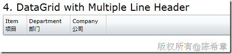 项目中经常会用到DataGrid这个控件,而且有时候会需要在这个控件的标题行中显示多行文本。例如下面这样